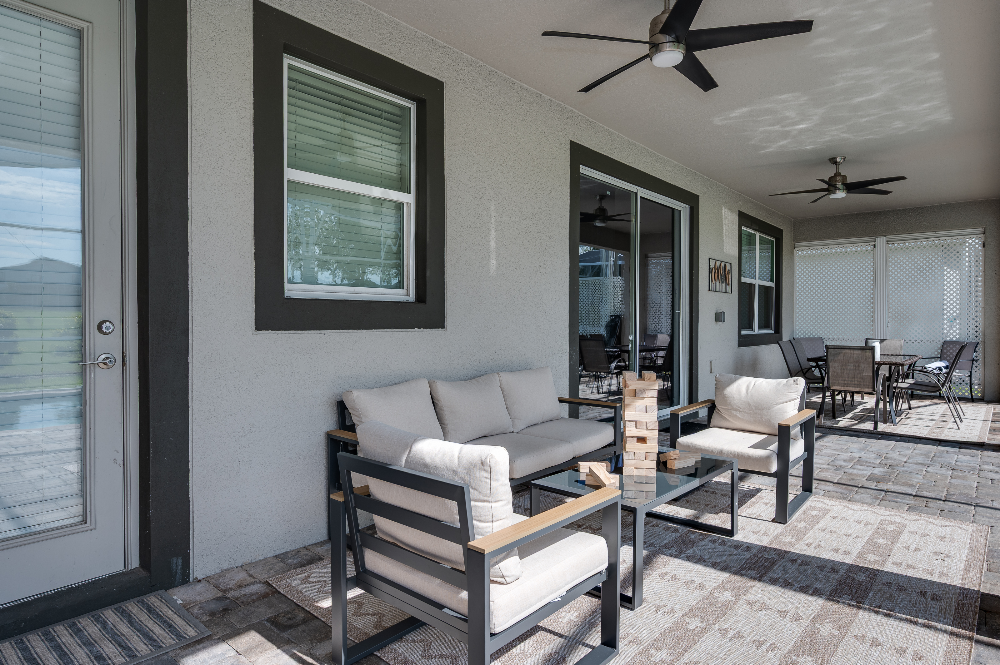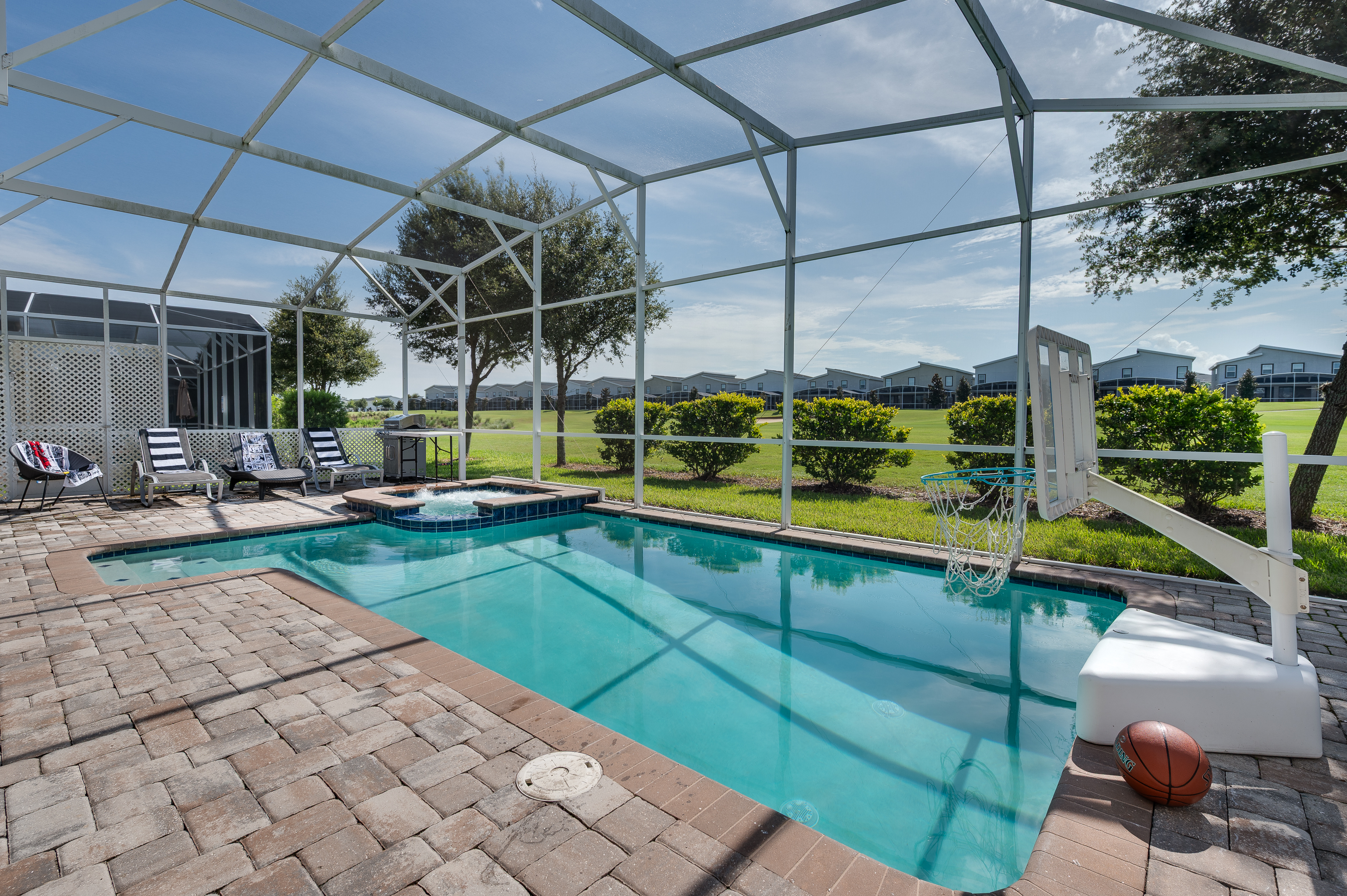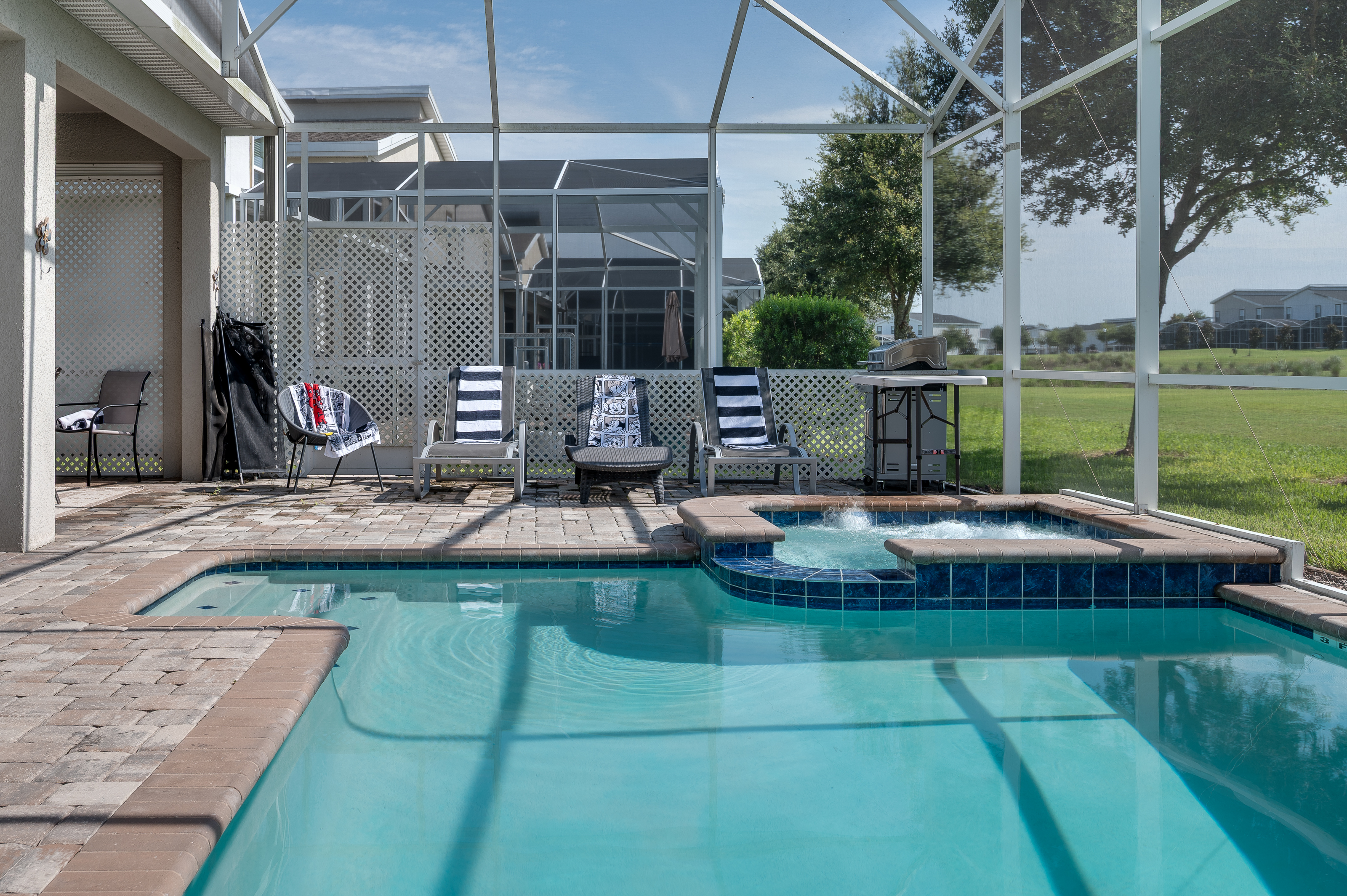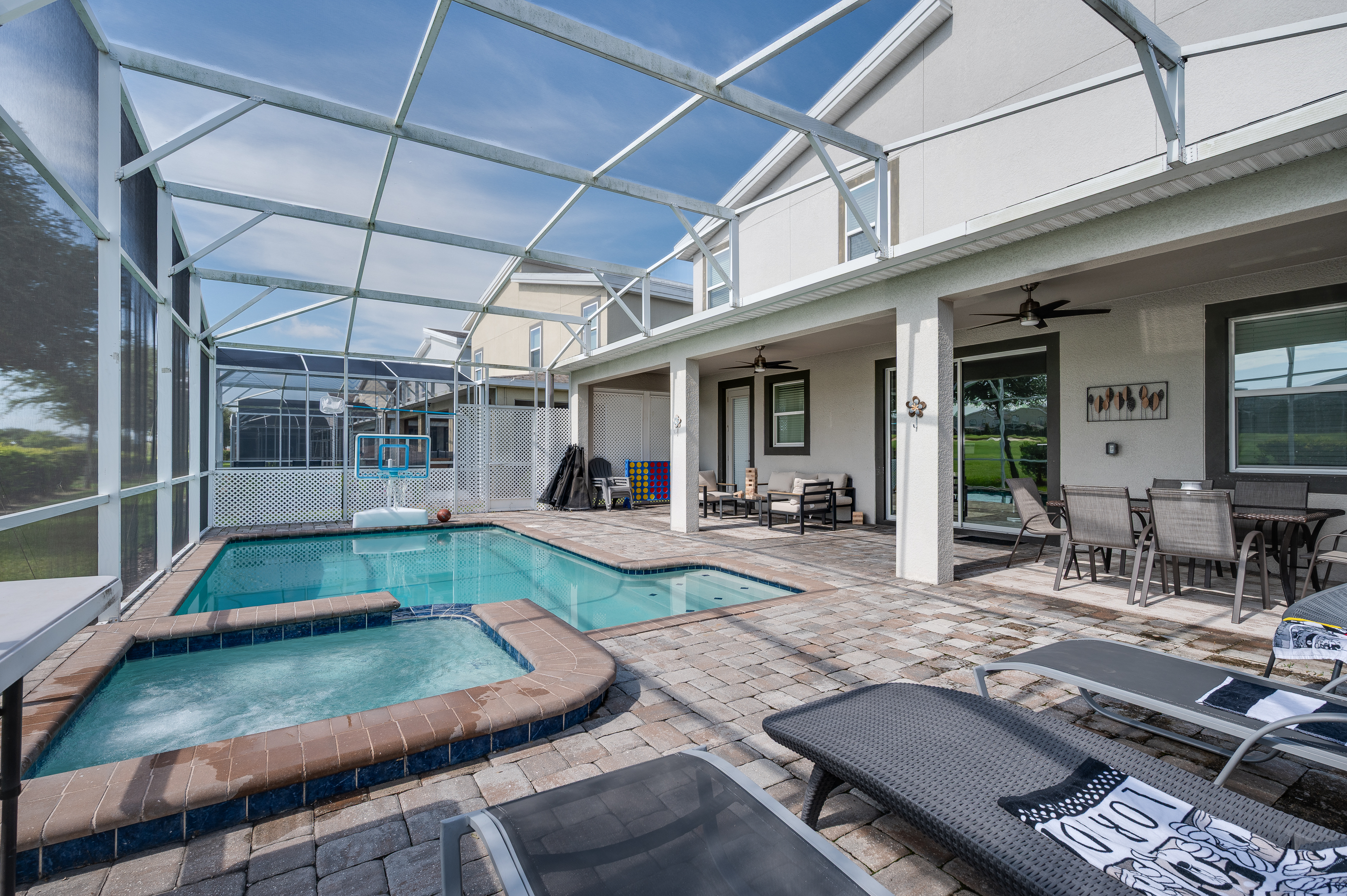 When staying in this house, you have access to all the resort amenities! The Champions Gate Resort area with easy access to Orlando’s theme parks, dining, and shopping. Just 30 miles from Orlando international airport, Champions Gate features resort amenities such as a lazy river, huge pool with slide and tiki bar. You will also find a fitness center, restaurants, and video arcade.