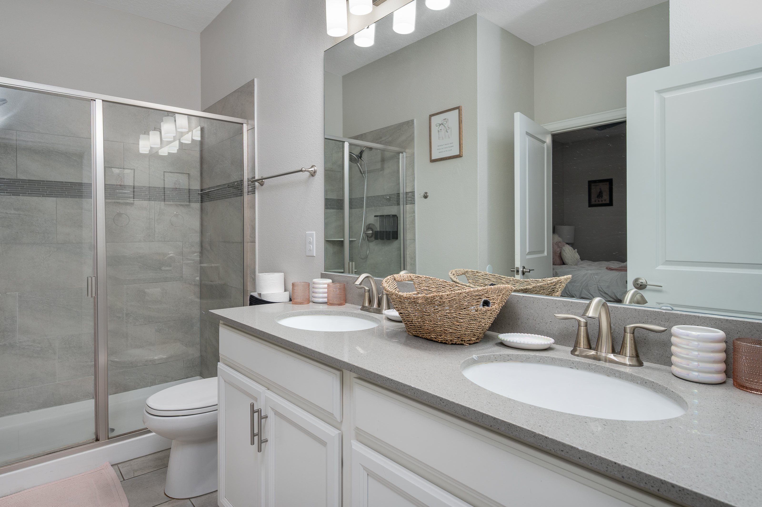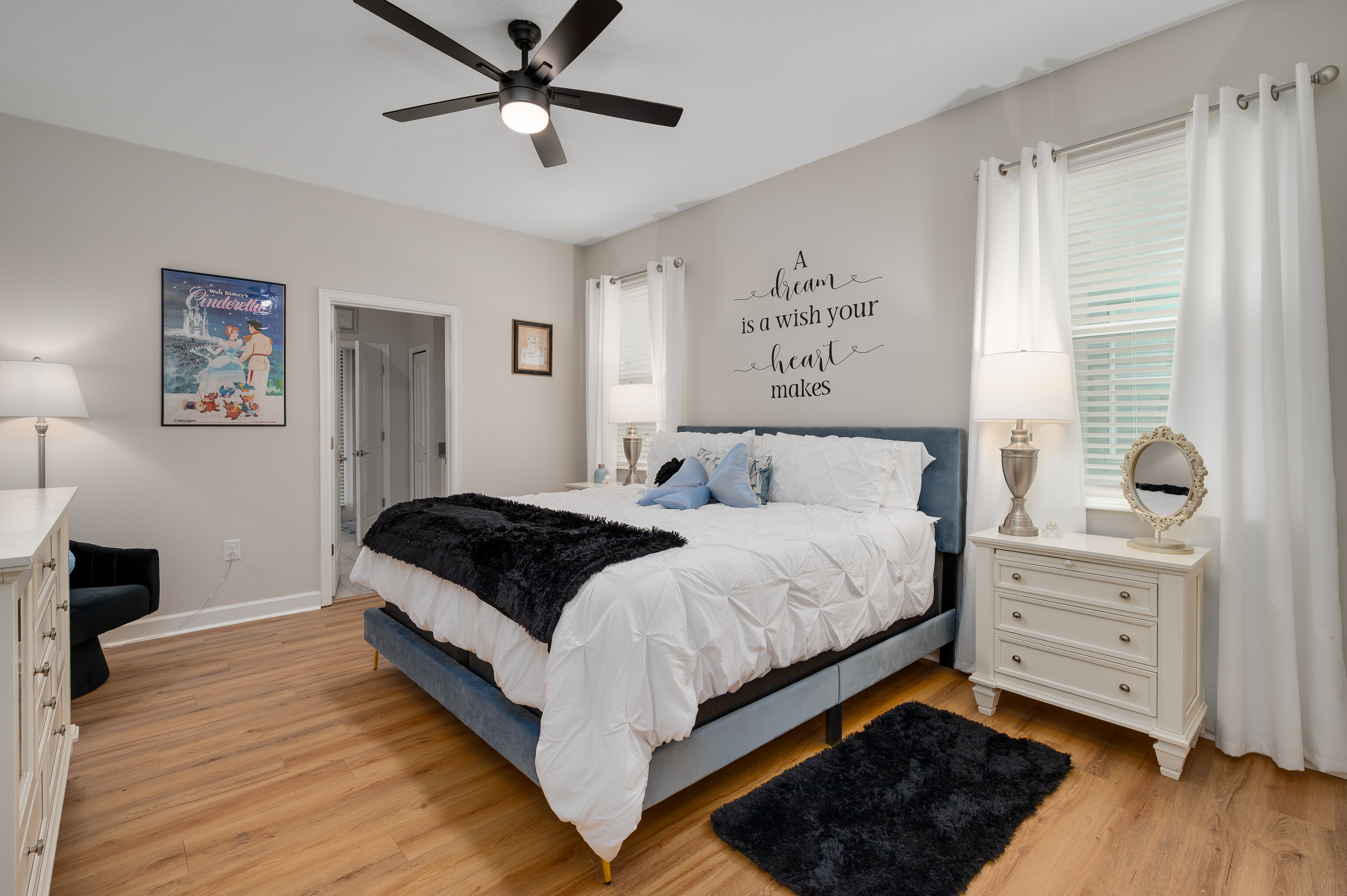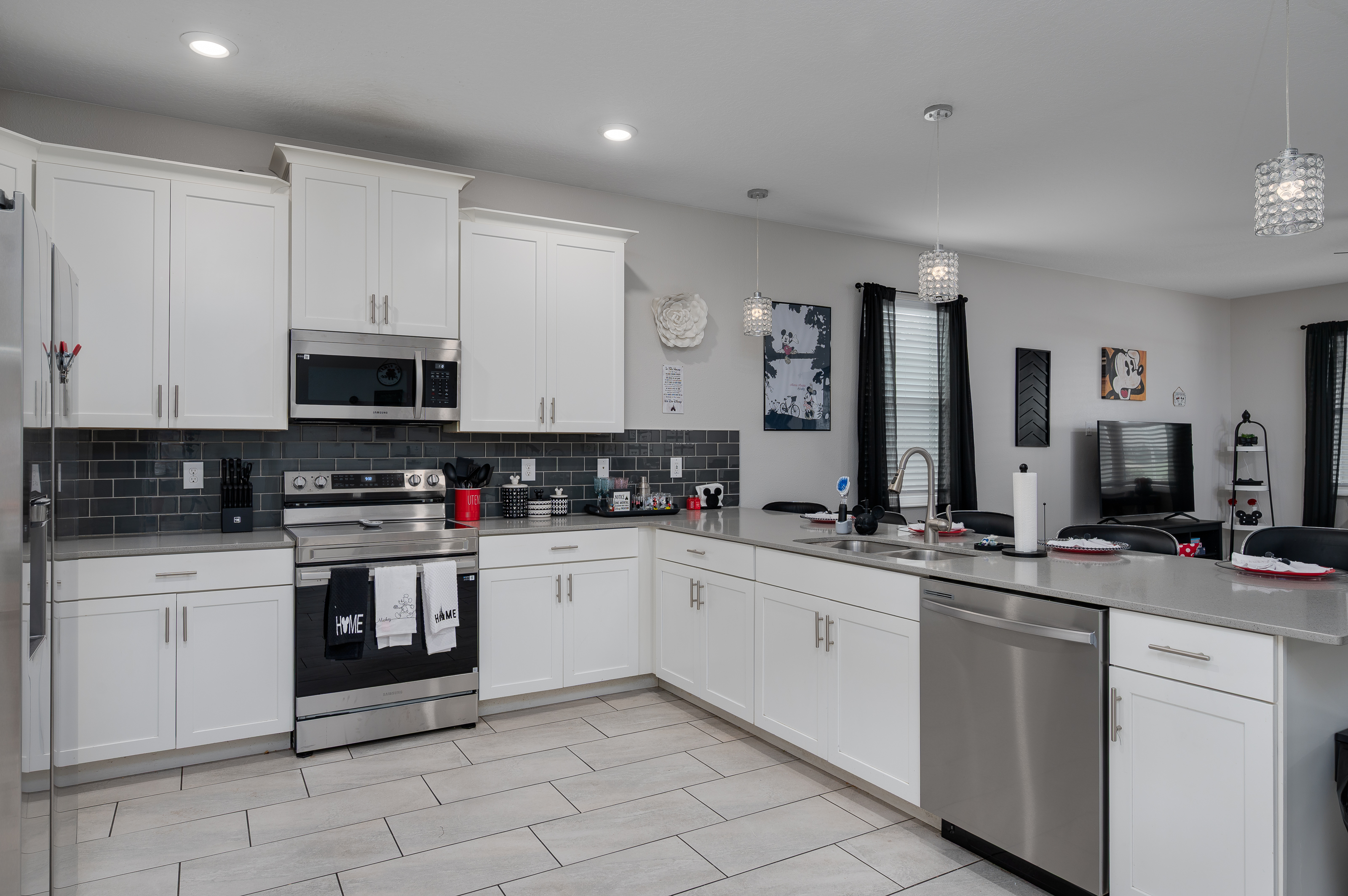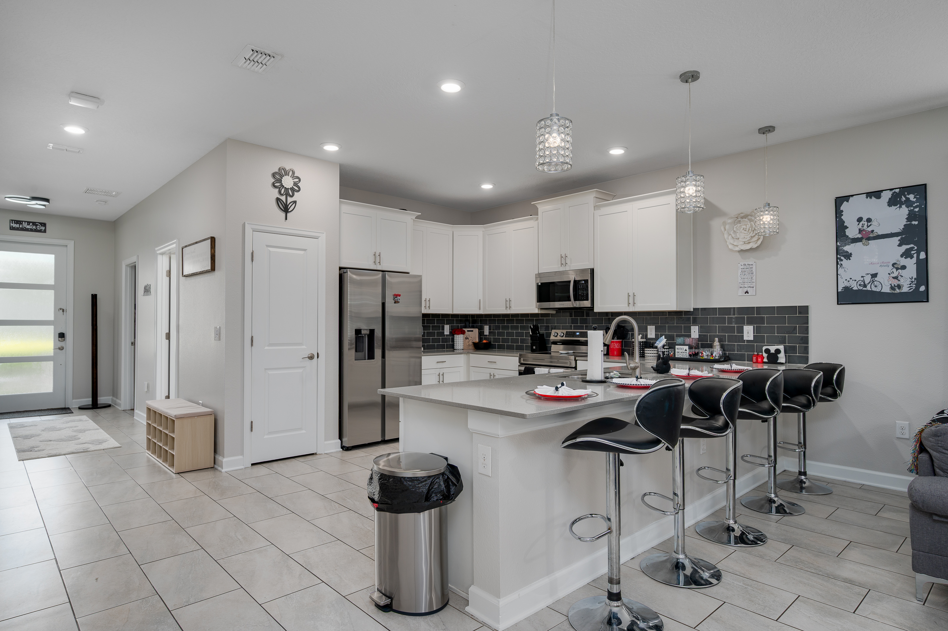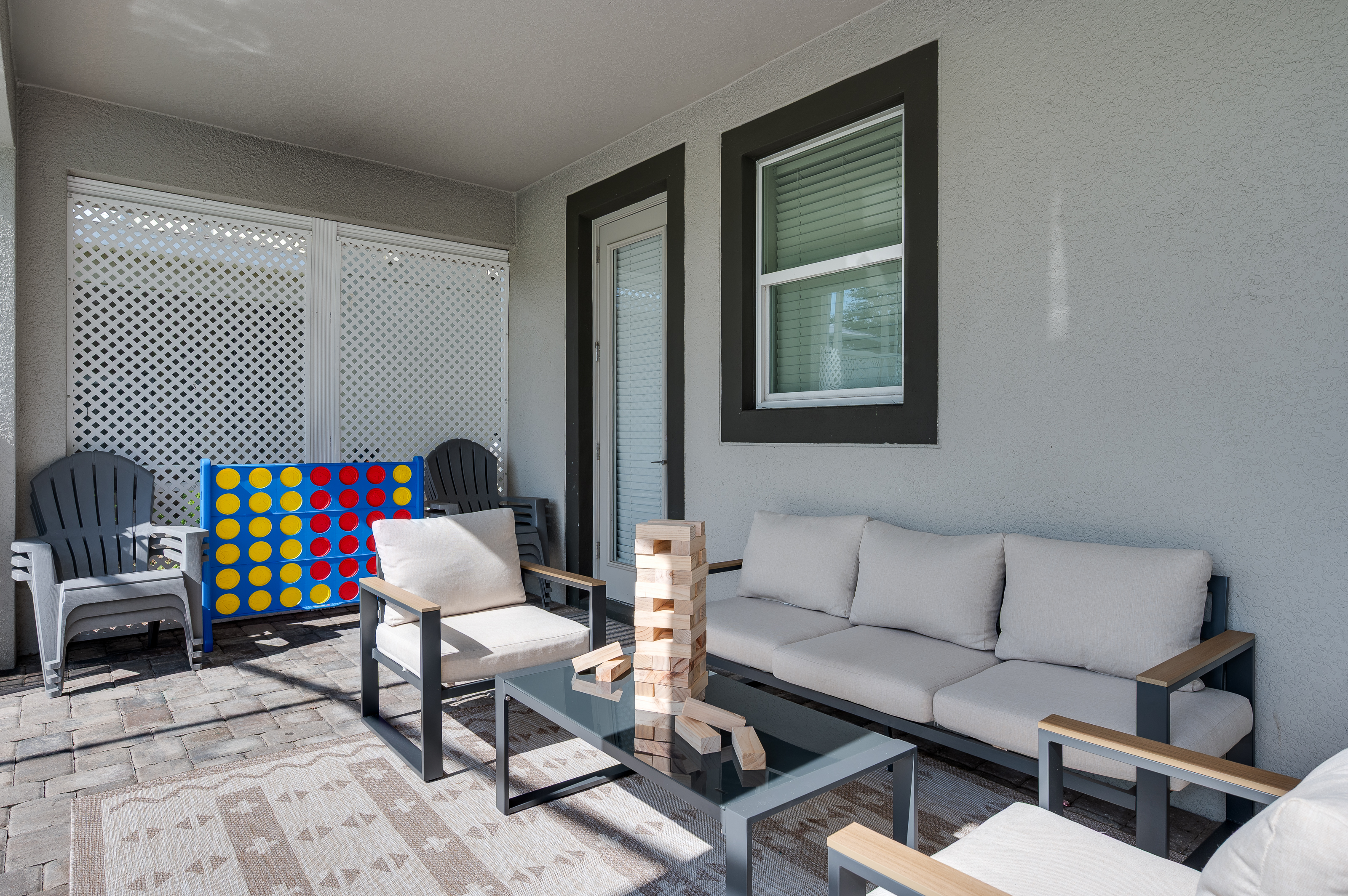 When staying in this house, you have access to all the resort amenities! The Champions Gate Resort area with easy access to Orlando’s theme parks, dining, and shopping. Just 30 miles from Orlando international airport, Champions Gate features resort amenities such as a lazy river, huge pool with slide and tiki bar. You will also find a fitness center, restaurants, and video arcade.