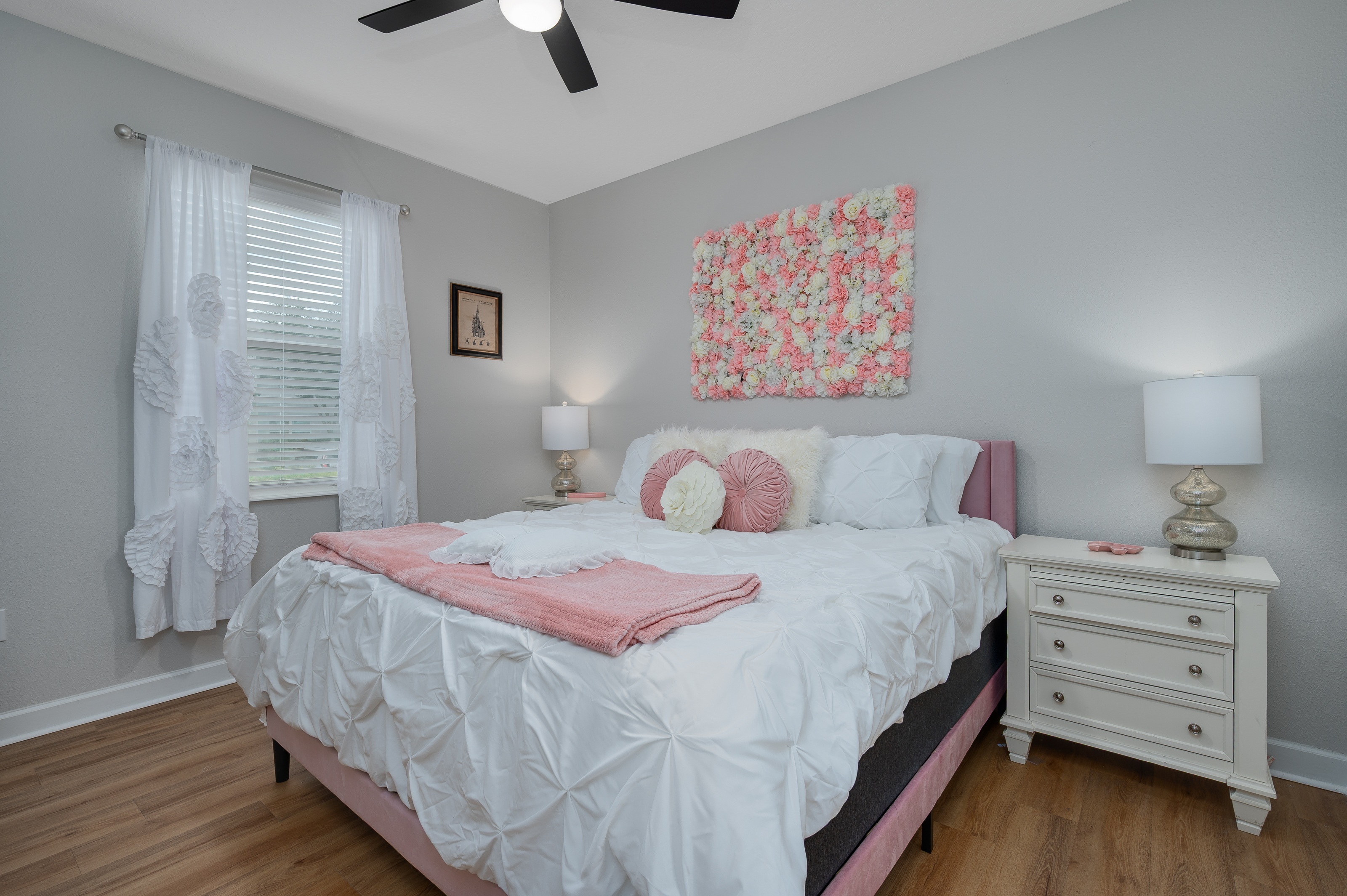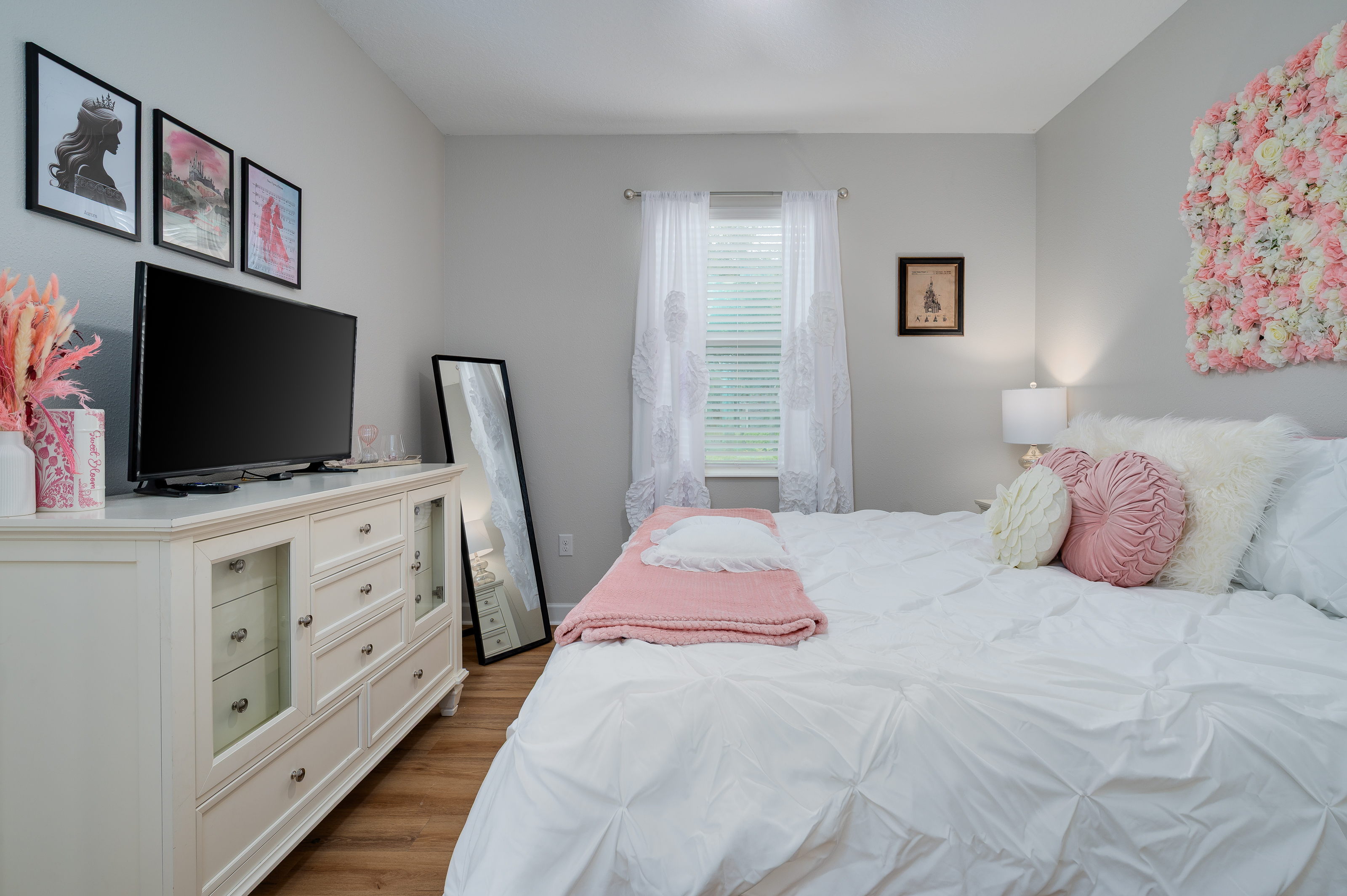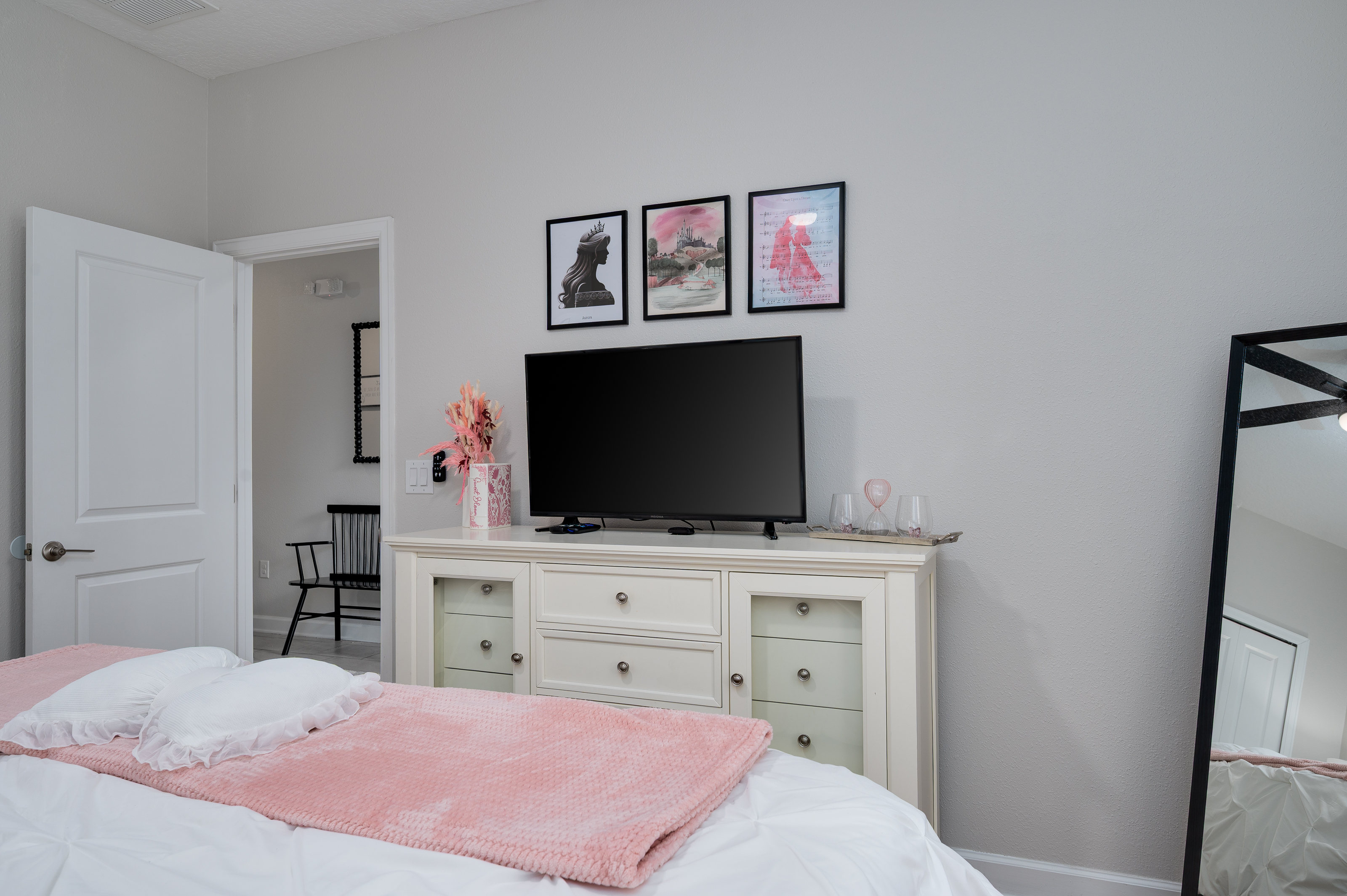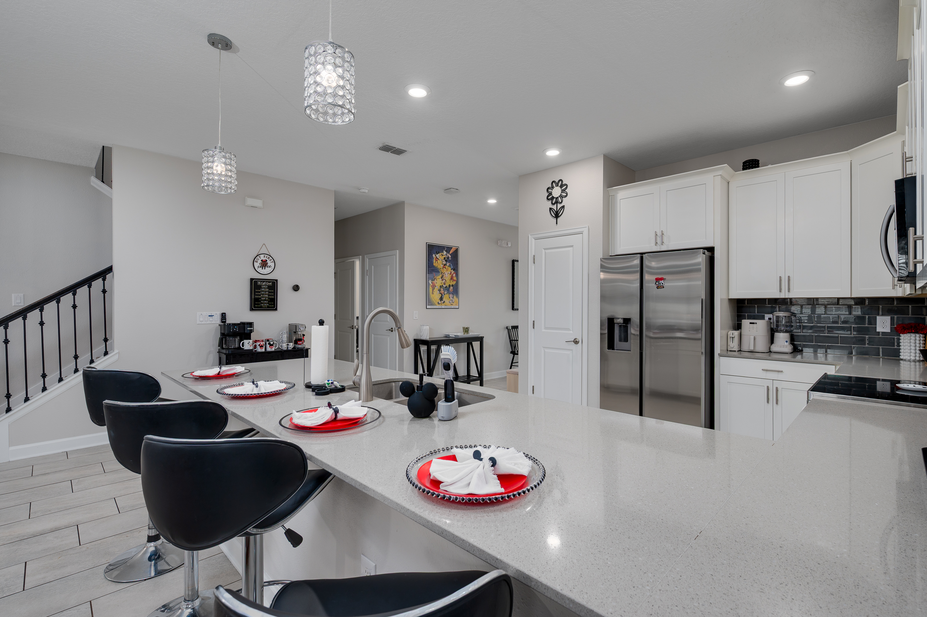 Upstairs, guests will find another entertainment zone with a foosball table and a basketball game—great for friendly competitions or relaxing with snacks and drinks. This floor also hosts six additional bedrooms, including imaginative Princess-themed rooms and Harry Potter–inspired rooms that add a magical touch to the stay. A laundry room and the remaining bathrooms are also conveniently located upstairs.