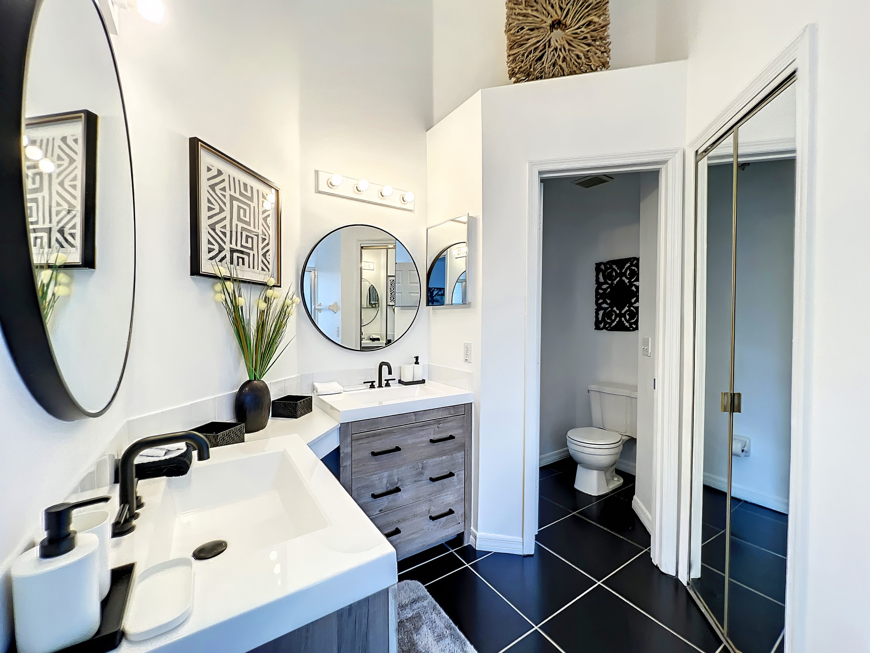 When stepping into Villa Dutches, you'll be greeted by the spacious living area which boasts a stunning open-floor plan. Whether you're looking to cook meals with the family or have a movie night together, there's ample seating for everyone's enjoyment. With sliding glass doors to the pool & patio area, you'll always be just steps away from your own private oasis. With an outdoor seating and dining area for everyone, a perfect poolside day is always right outside.